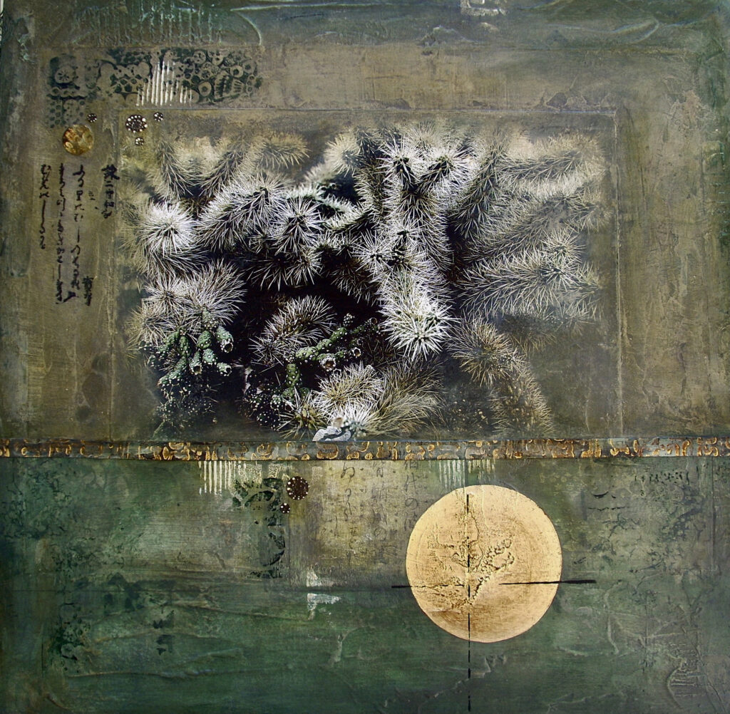 Mixed media, acrylic, collage, gold leaf, and textures are some of Andrea’s favorite raw materials. Her art is often Asian- and nature-inspired.