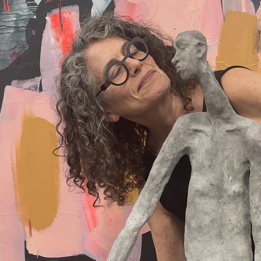 My pieces hold the tension of our shared need for connection. Witness raw emotion in the color fields and layered marks of my paintings and in the expressive gestures of my cement sculptures.