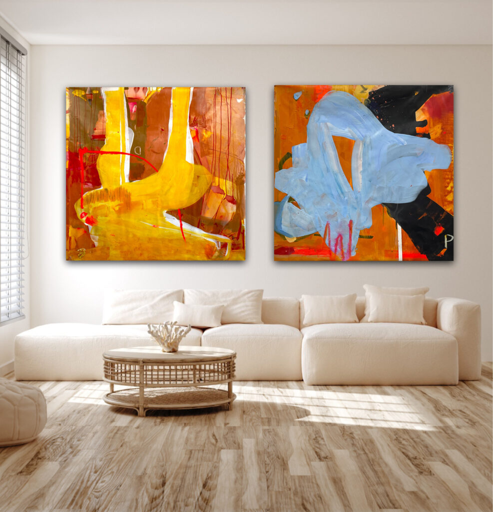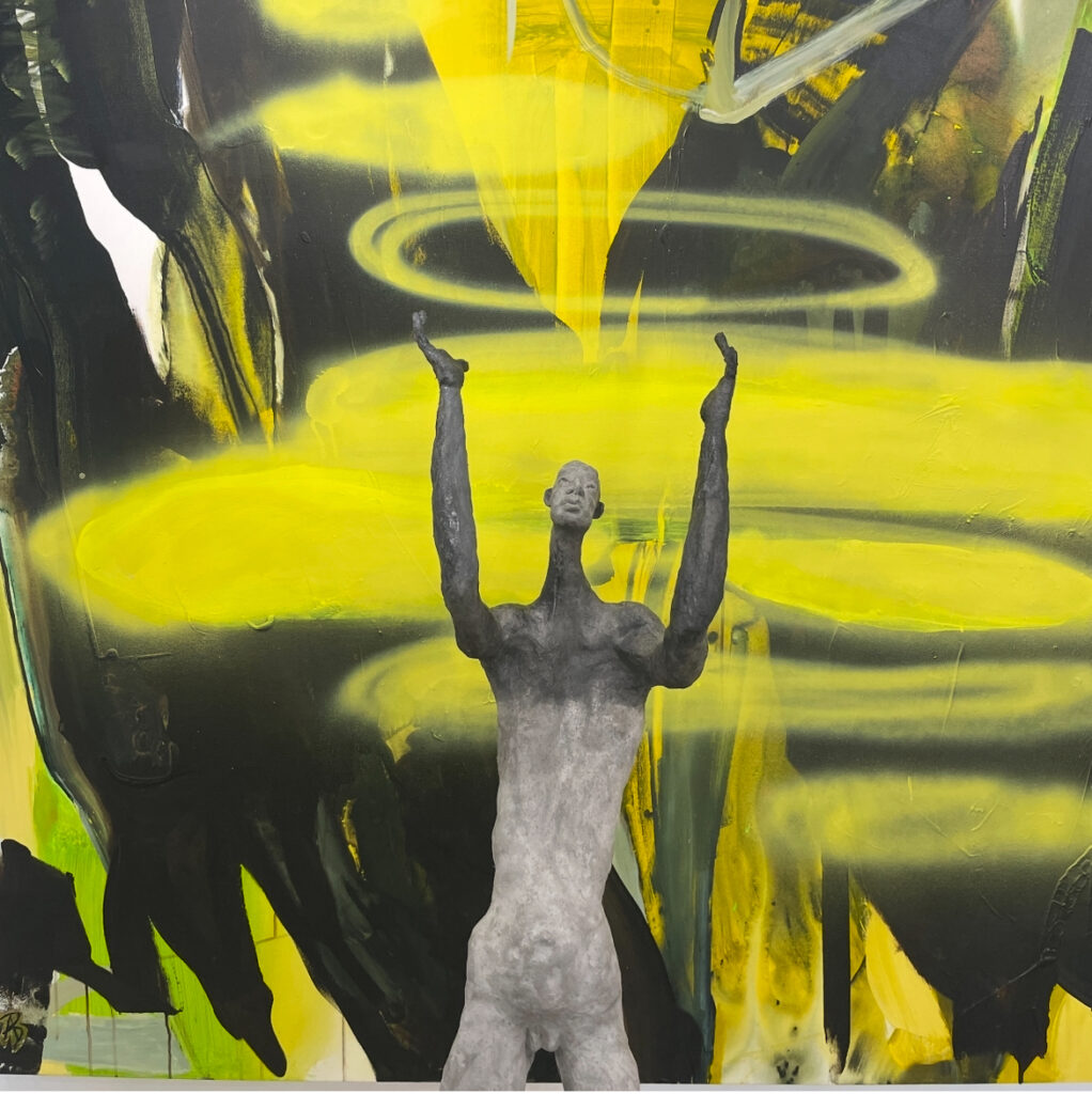 Contemporary abstract painting and figurative sculpture