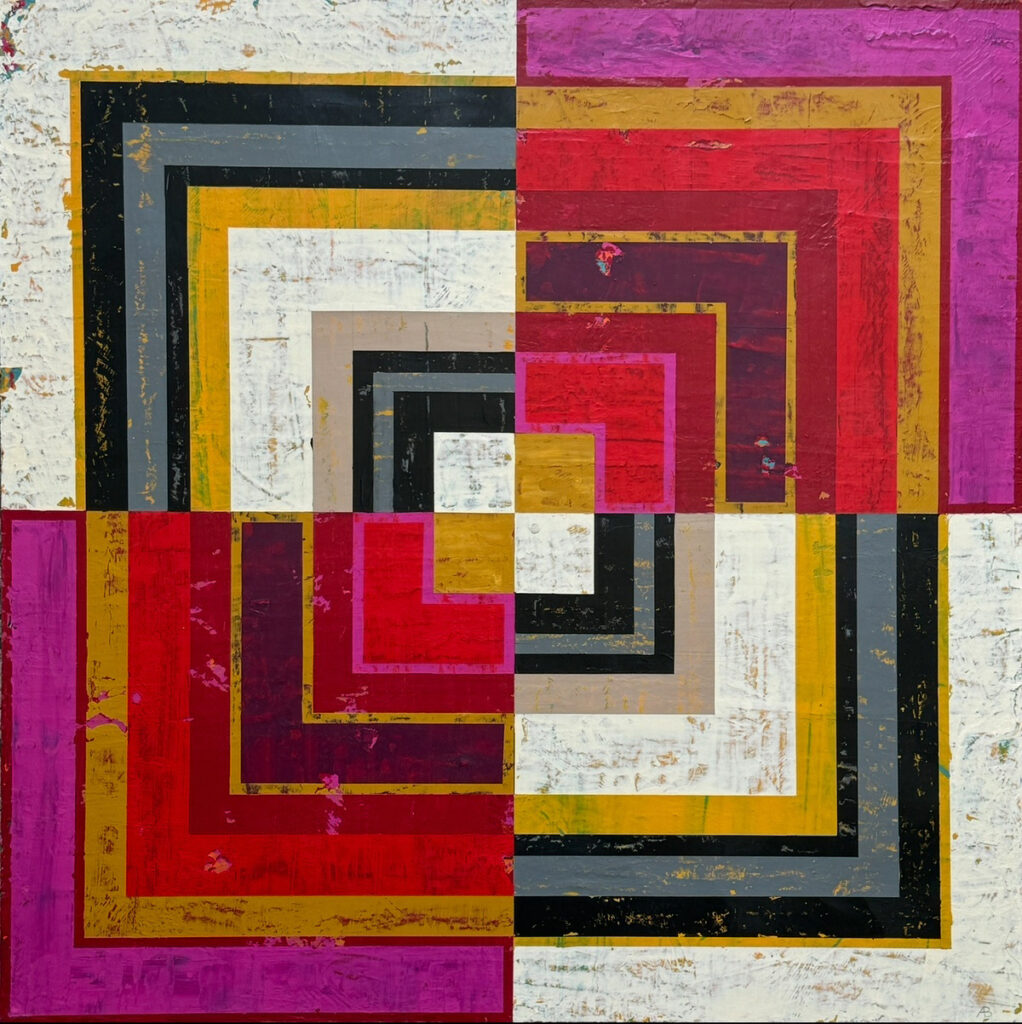 I create abstract paintings that explore memory, place, and transformation. Through layered color, shape, and texture, my work balances spontaneity and structure, inviting viewers to uncover hidden stories and to find beauty in complexity.