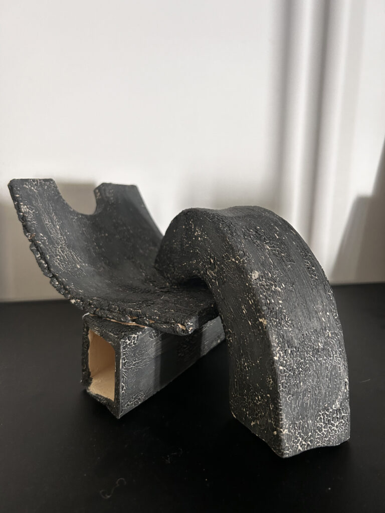 Minimal and modern sculptural freestanding forms work in unison as groupings or as standalone works of art. Graphic wall pieces are custom designs, evocative of modernist and brutalist forms, merging art, design, and craftsmanship.