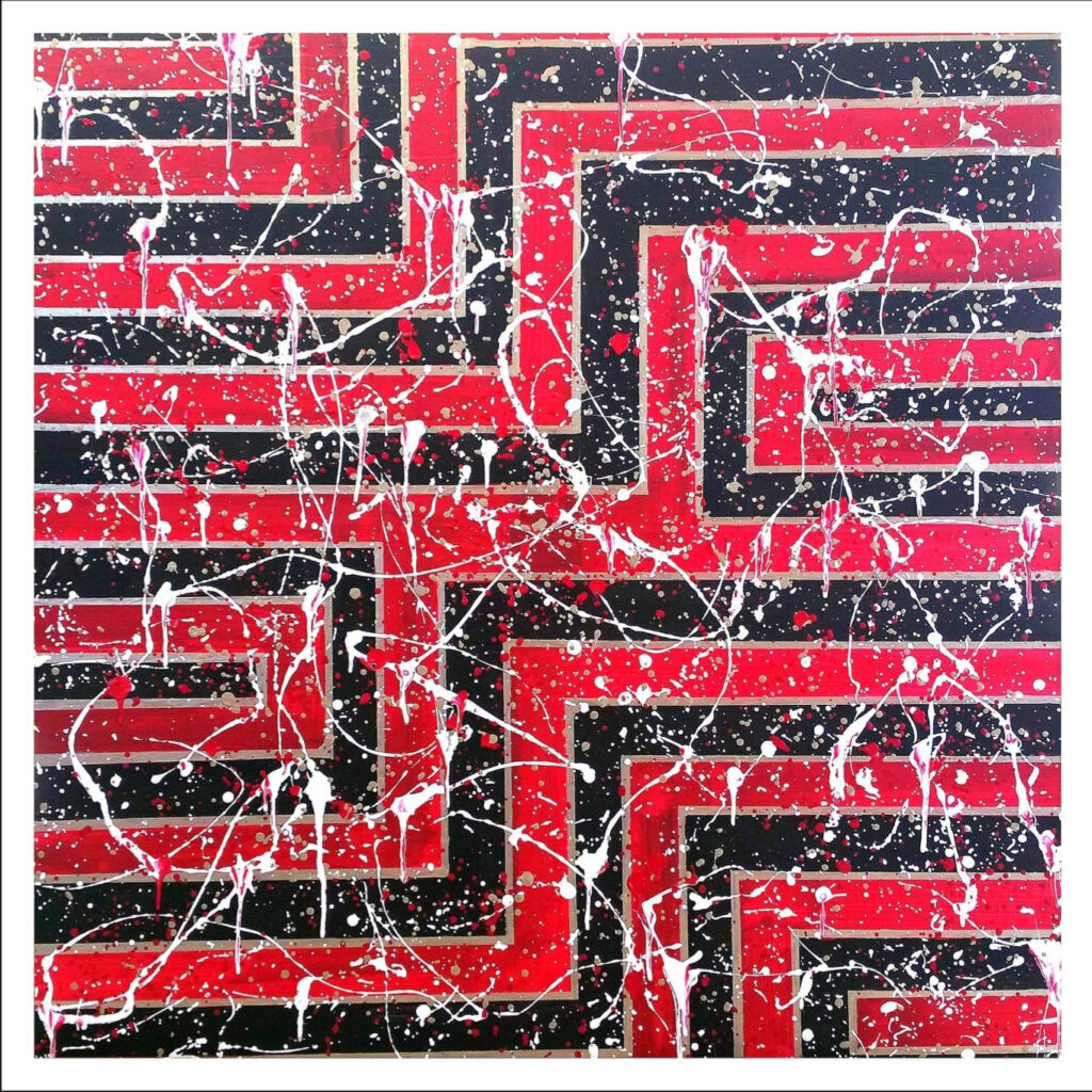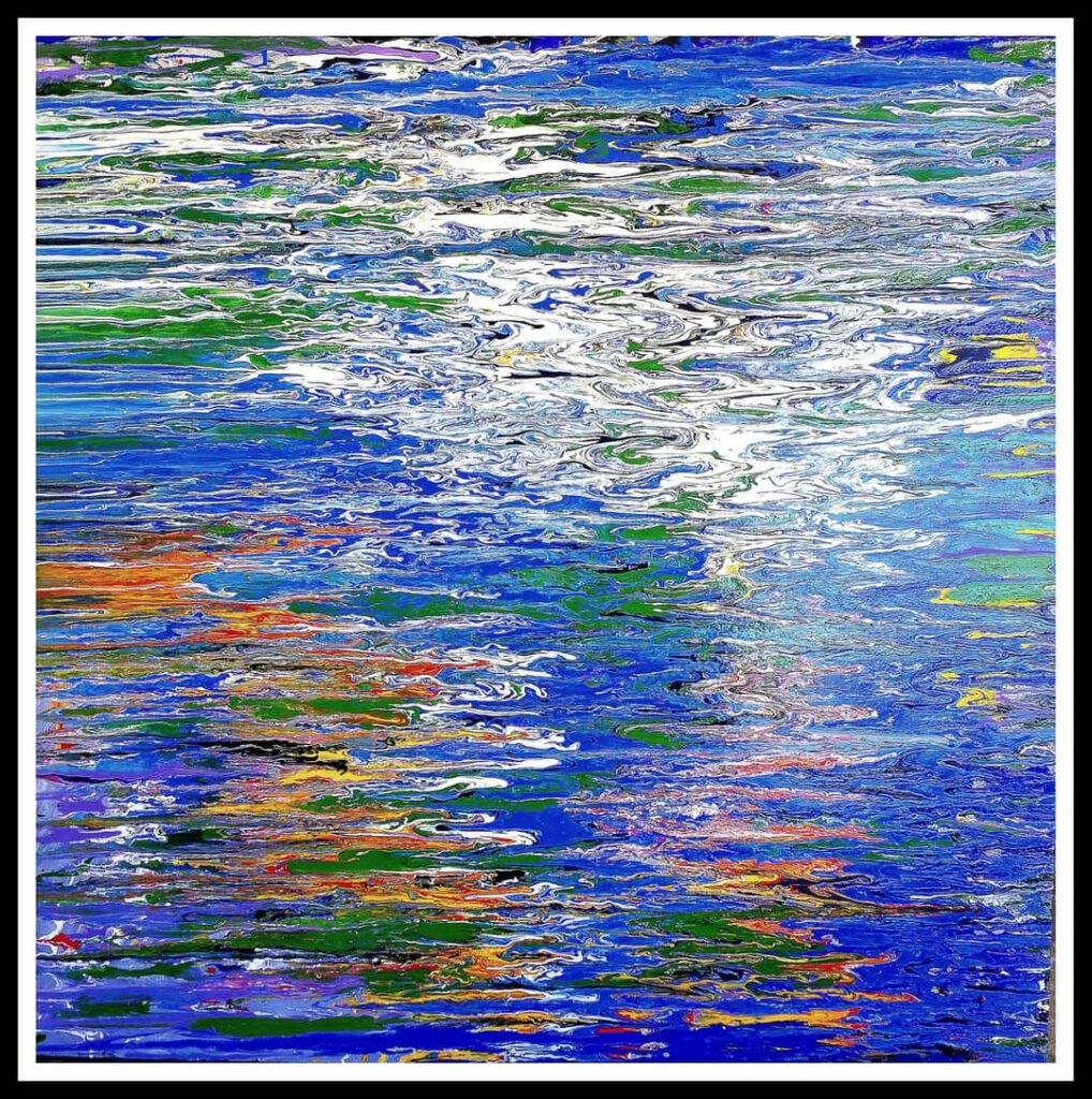 Exploring the integration/interaction of acrylic paint on canvas in a very non-traditional process. At times a very fluid visual results, while at other times it’s more erratic and random. Vibrant colors are a main focus.