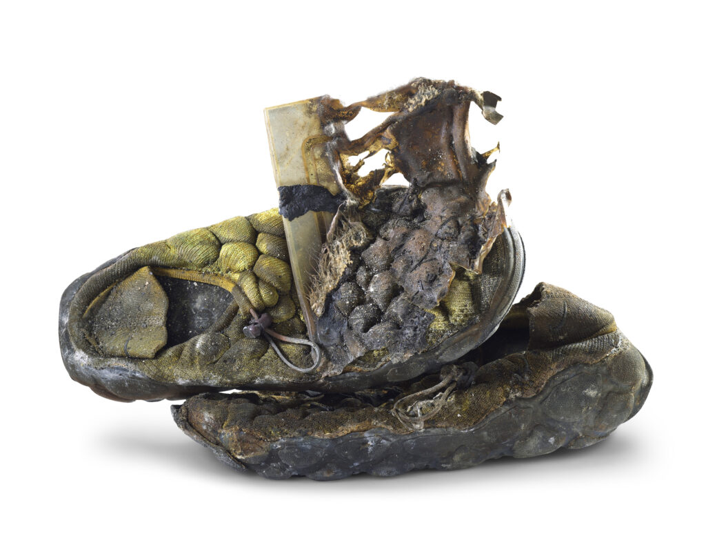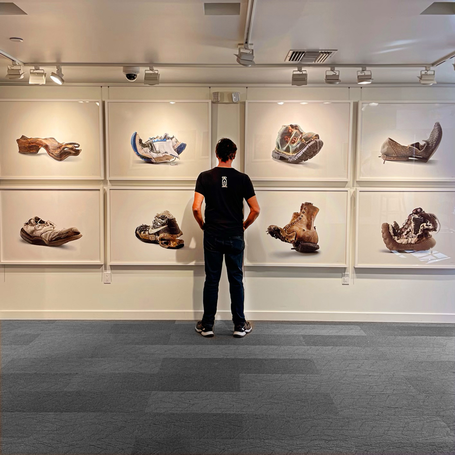 Jeff Sarpa’s monumental photographs reveal the haunting presence of abandoned shoes collected across western deserts. In his large-format images, each shoe, rendered in striking clarity, embodies forgotten lives and lingering mysteries, honoring the enduring legacy, solitude, and stories of the American West.
