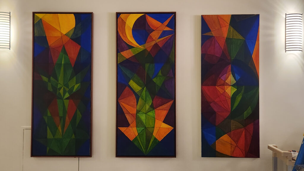 Inspired by the vibrant lights and hues of the desert, my abstract works take on themes like folk tradition and modernism to create a meaningful discussion on the importance of time, ideology, history, existence, and one’s place in the world.