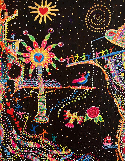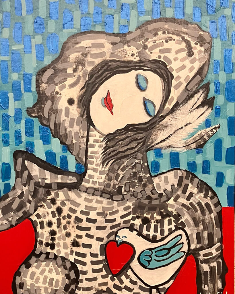 I do not plan my painting, allowing intuition to guide me. Experiences living in Taiwan, Brazil, Pakistan, India, Panama, Chile, Honduras, and Mexico inspire me. The universality of what matters to human beings is a constant thread in my art.