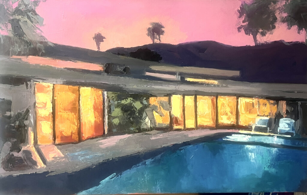 Bold color palettes, thick and chunky paint, and expressive brushwork evoke memories of vibrant desert landscapes, abandoned and retro places, modernist architecture, and scenes of Americana, while harmonizing with midcentury, biophilic, and maximalist trends.
