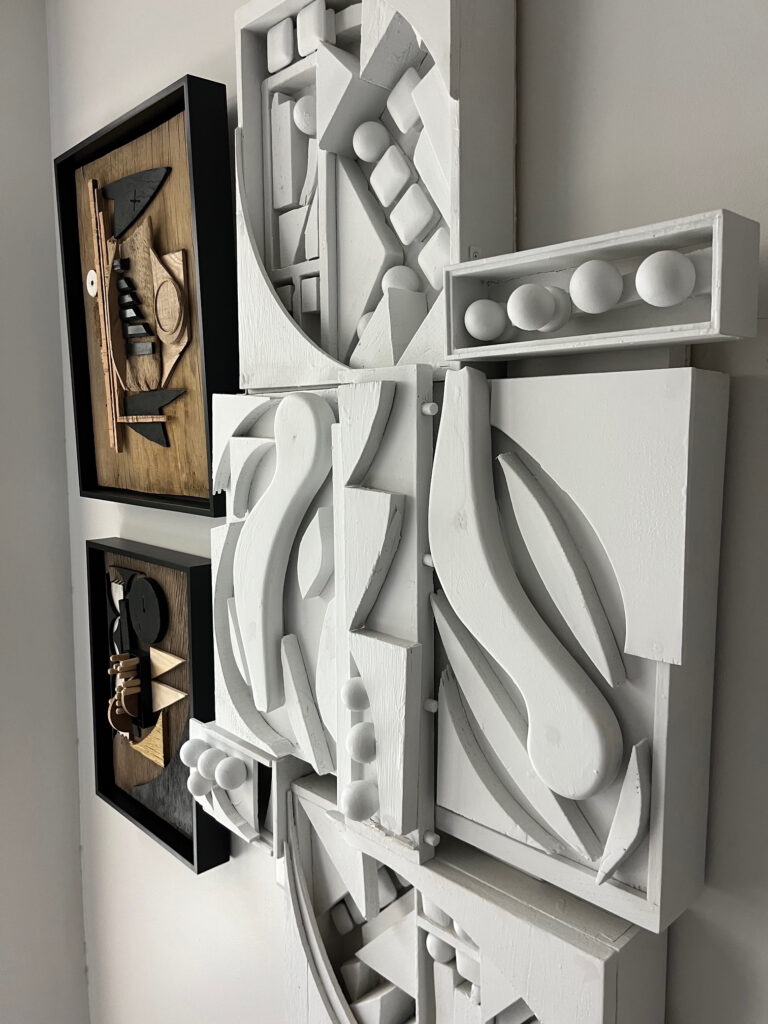 I create abstract, lyrical assemblage sculptures from found wood, discarded furniture, and scraps gifted by cabinet makers — each piece reimagines cast-offs into compelling forms that celebrate material history, transformation, and the unexpected beauty of reuse.