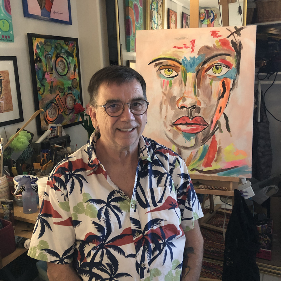 Leonard Rick Travis enjoys using a variety of styles and media. He loves color and creates cubist faces and abstract worlds. He uses acrylic and watercolor to create many of his multimedia paintings.