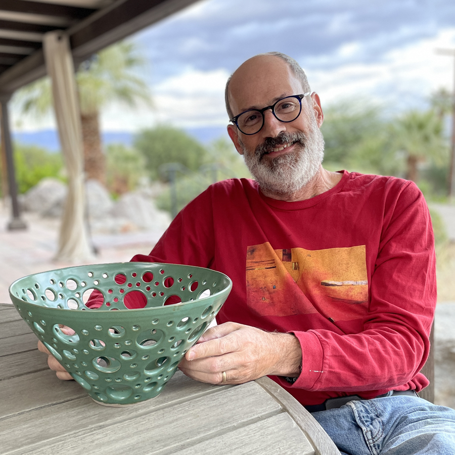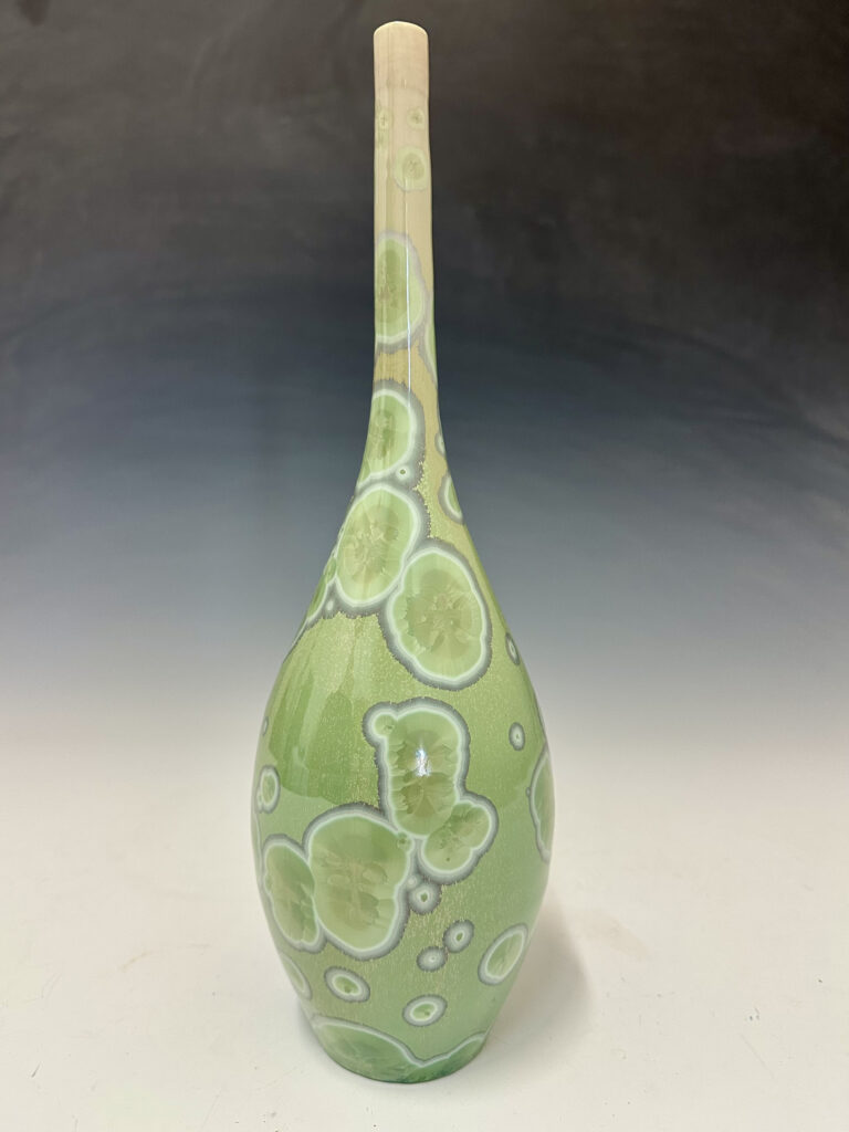 I create thrown vessels and utilize many different glazing techniques, including cone 10 reduction, oxidation, pit firing, Raku, and crystalline glazes.