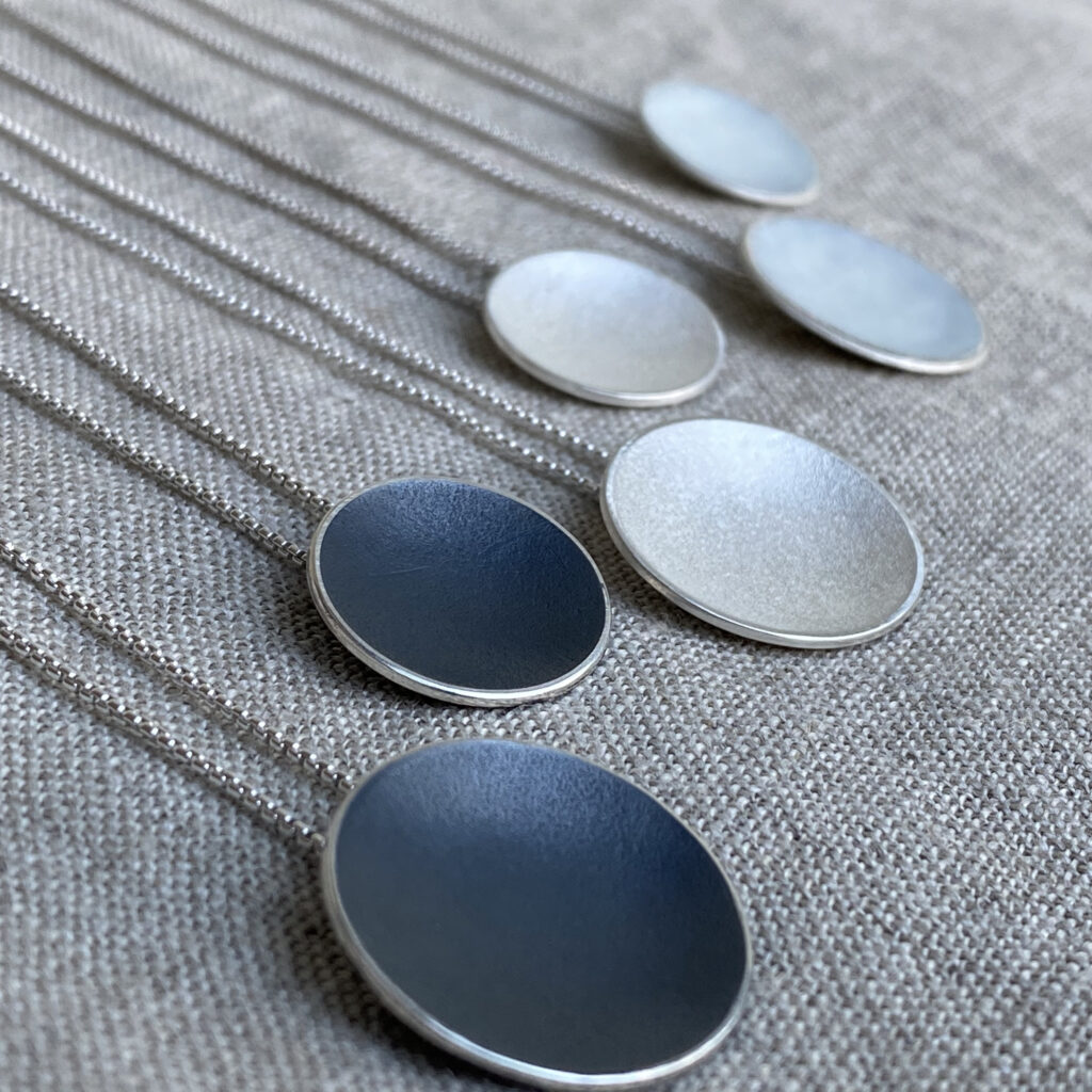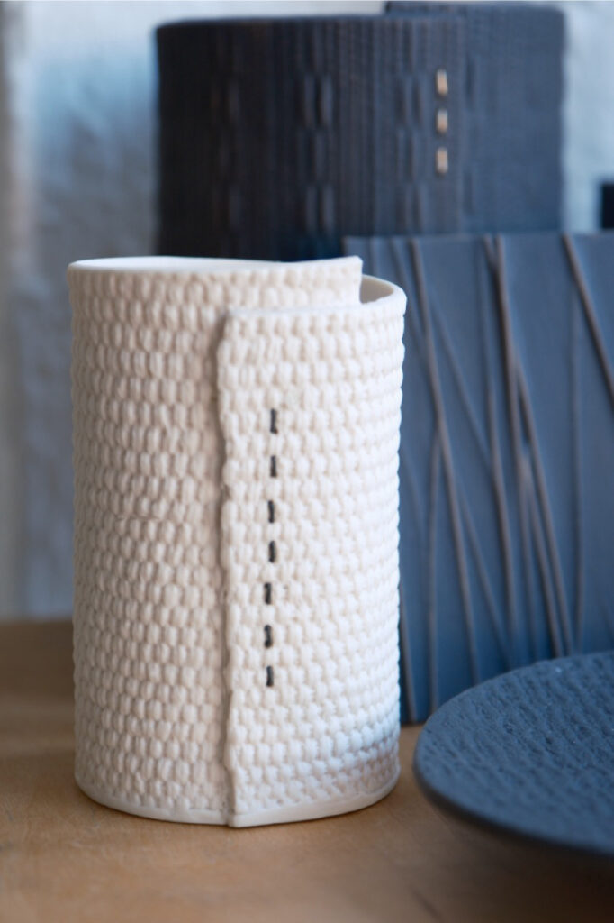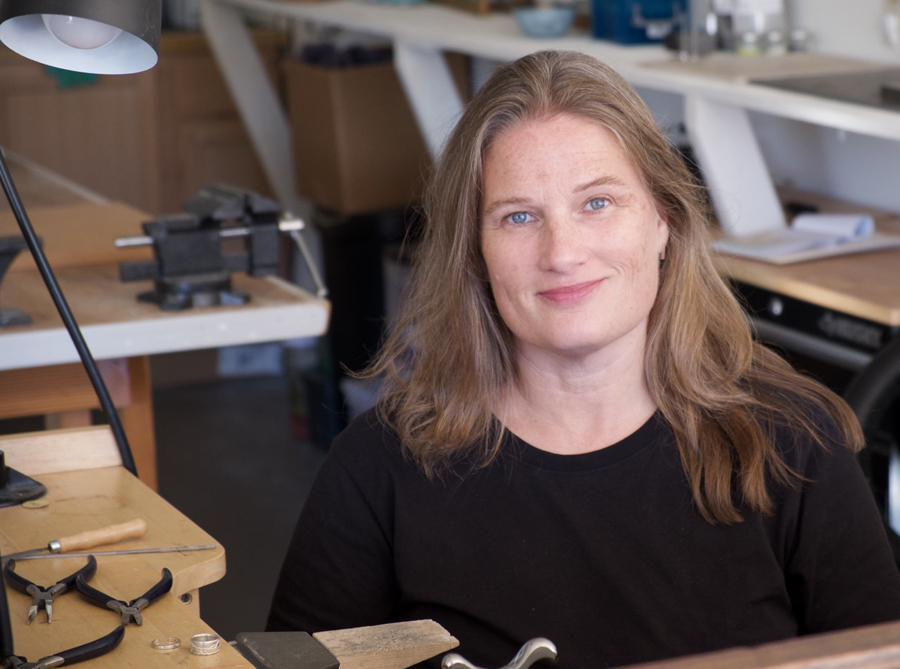 Signe’s jewelry is created using traditional metalsmithing techniques, including fabrication from silver and gold, lost wax casting, and vitreous enameling. Ceramic pieces are hand-built from textured porcelain and black stoneware, and often include precious metal embellishments.