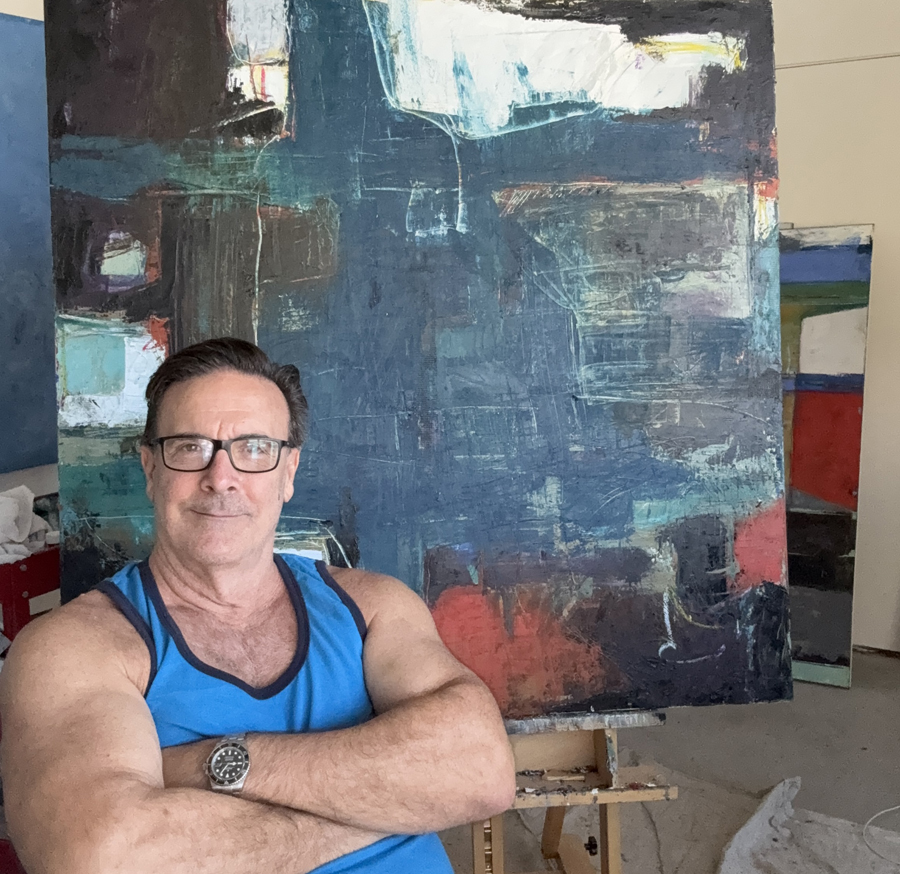 Tom Burns creates layered, contemporary abstract oil paintings on large canvases, blending rich textures, bold color fields, and nuanced depth. His work balances spontaneity and control, inviting viewers to explore shifting emotions and interpretations within each immersive, atmospheric composition.