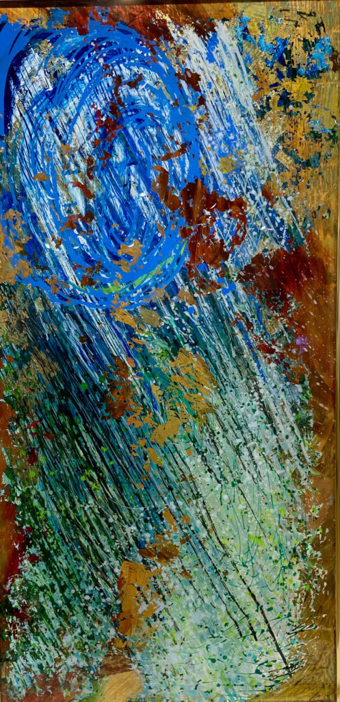 My art is a captivating and dynamic reinterpretation of the ancient art of reverse painting on glass. Color radiates through the Plexiglass surface, creating a luminous sense of depth; layered hues and textures make the image appear suspended in space, glowing with brilliance and movement.