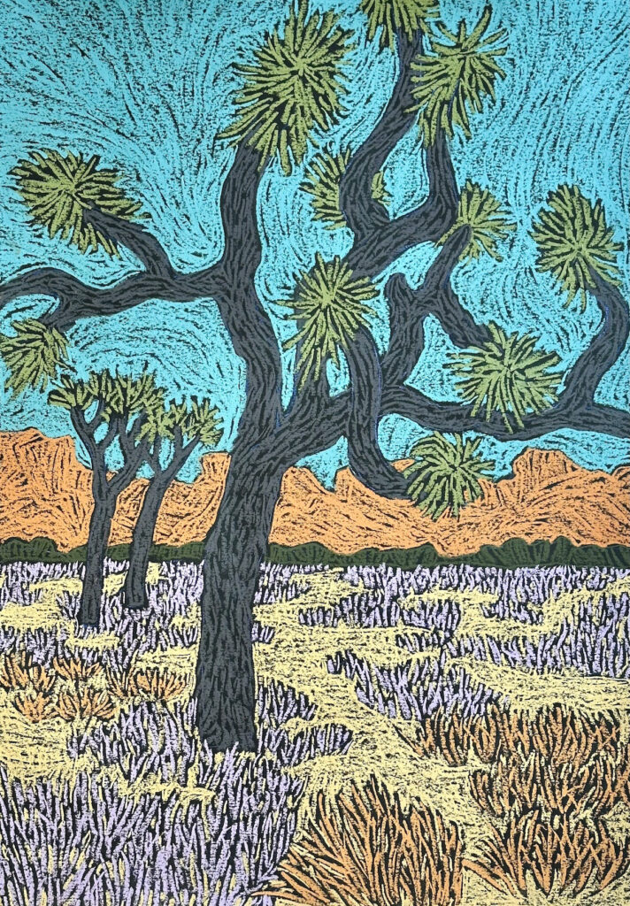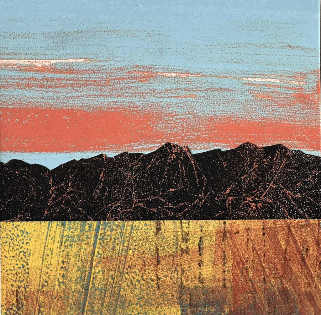 Similar themes run through my etchings, monoprints, pastel drawings, paintings, and collages. I enjoy expressing landscapes and natural forms in familiar yet unexpected ways, paying attention to form, color, texture, pattern, and value.